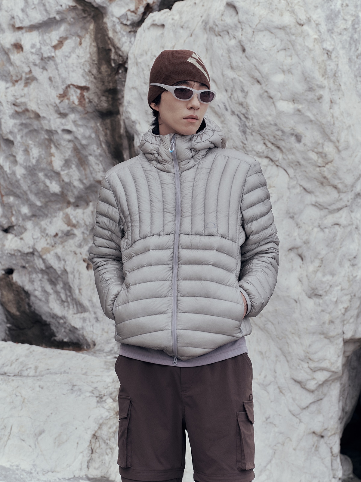 グッと冷える夜の寒さ対策に、ポケッタブルになるダウンを持参しました。