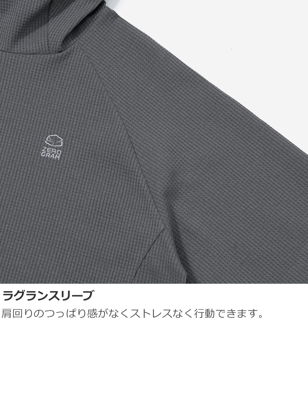 柔らかなワッフル組織で肌に直接着てもさらりと心地よい着用感でアウトドアから日常まで、季節を越えて活躍します。