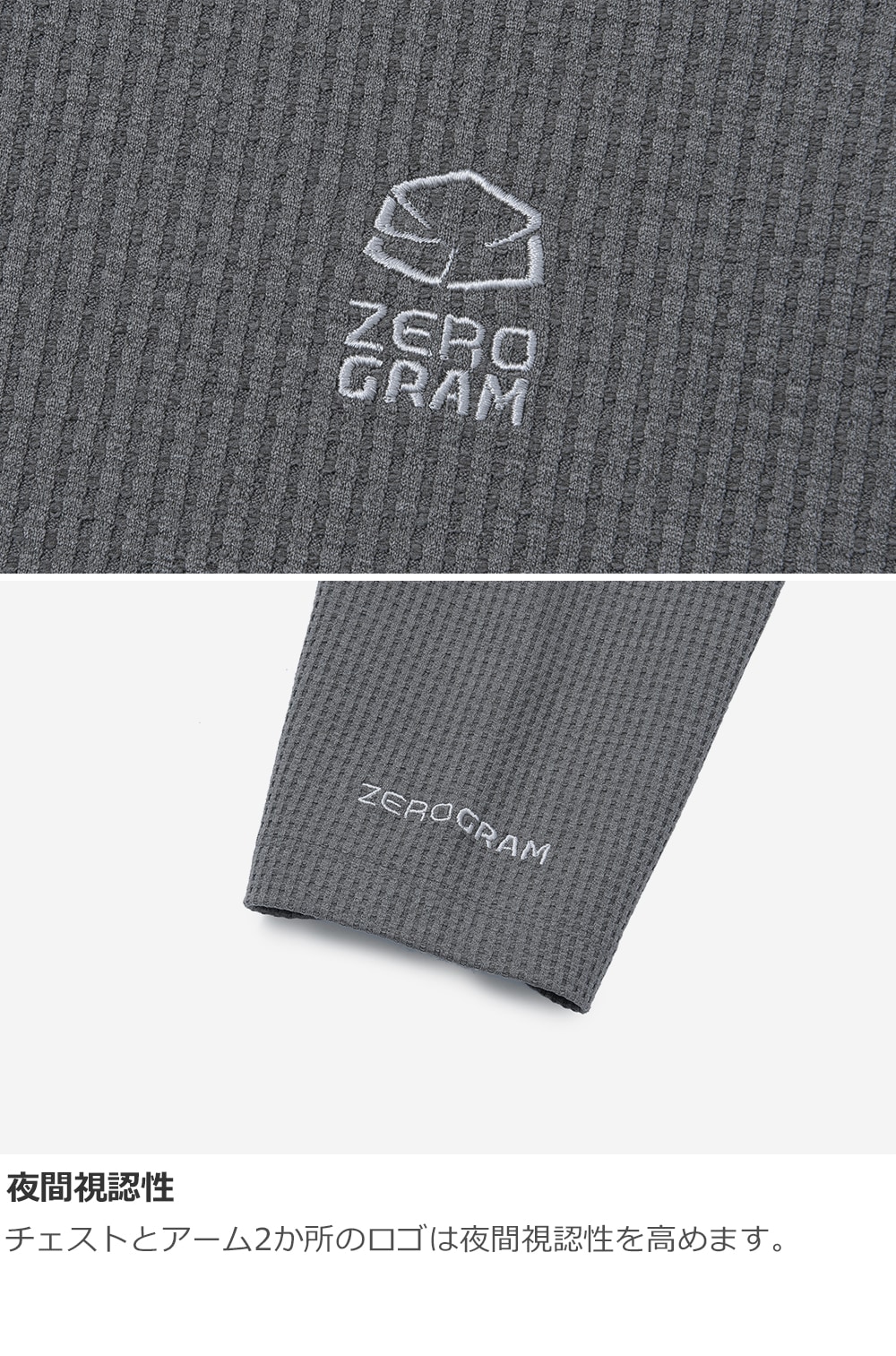 廃棄されたカキ殻を再利用した環境配慮素材 Seawool® と、植物由来の Sorona® を混紡したワッフル組織の次世代ベースレイヤー。