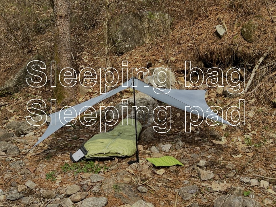 スタッフAは軽さ重視でポールは使わずシェルターのみで使用しました。