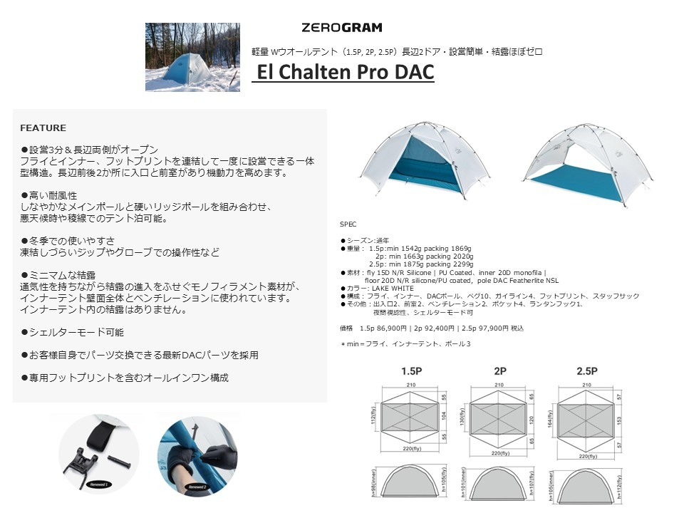 El Chaltenシリーズ:「El Chalten PRO DAC(LAKE WHITE)」「El Chalten 1p ZEROBONE」、
